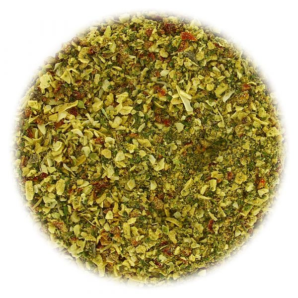 Composition: onion, paprika, vegetable protein hydrolysate, parsley, pepper, thyme, oregano, coriander, cumin and rape oil.