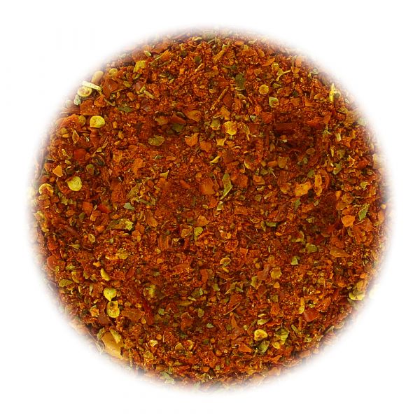 Composition: chili pepper, paprika, black pepper, curry (contains turmeric, mustard and coriander), basil, marjoram and oregano.